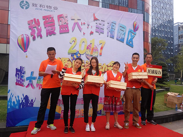 2017年9月26日,由致和物业组织的盛大国际园区业主运动会,k8凯发天生赢家在众多业主单位中体现突出,连续斩获托球接力、袋鼠接力、踏板行进折返跑等多个团体项目的第一名,获得了丰富的奖品。